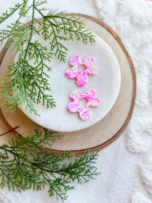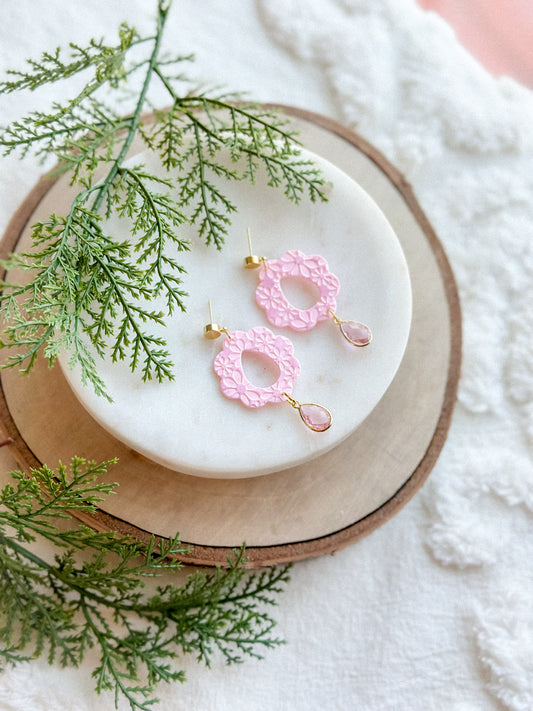 Pink Floral Shimmer Crystal Cutout Dangles- Bridgerton