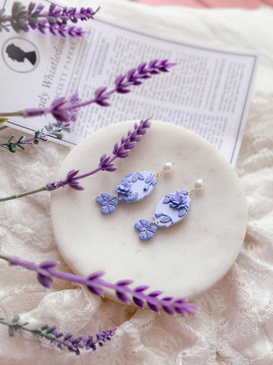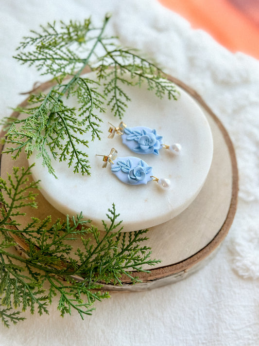 Eloise Blue Floral Pearl Drops w/ Gold Bows