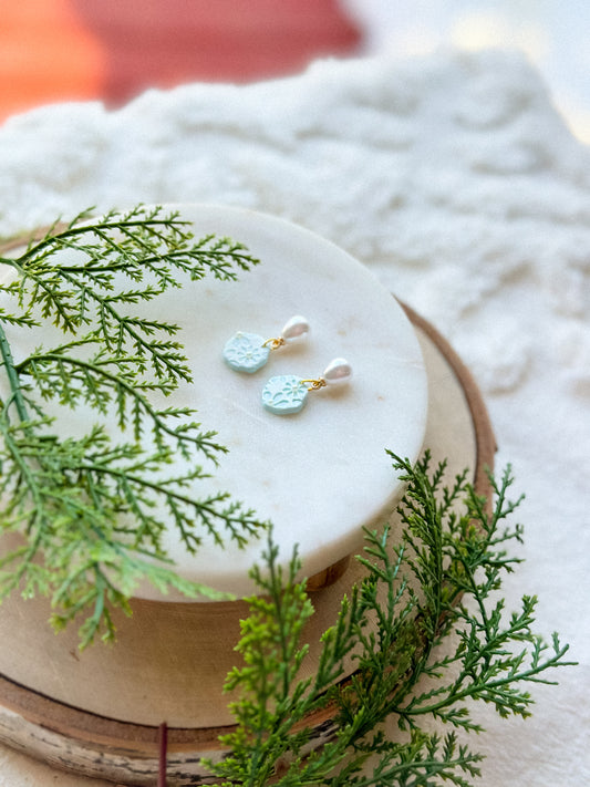 Mint Floral Shimmer Pearl Studs- Bridgerton