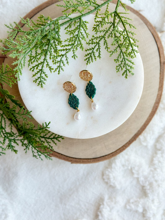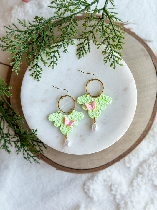 Philipa Butterfly Leaf Pearl Dangles- Bridgerton