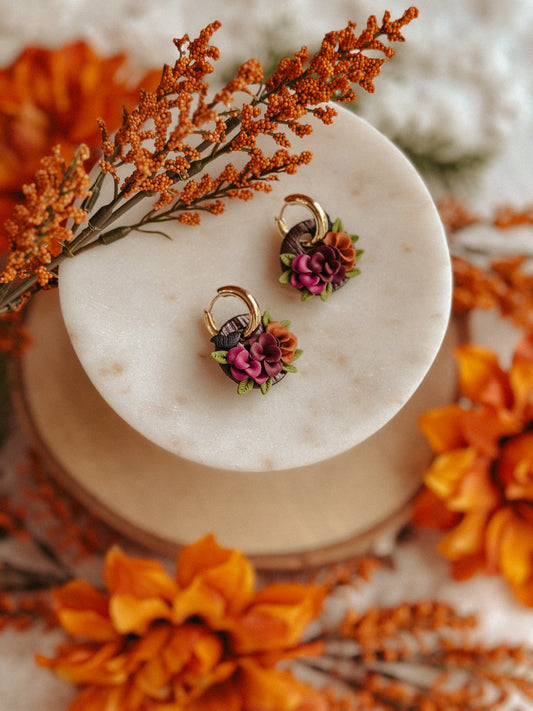 Autumn Floral Huggies – Fall Flower Polymer Clay Hoop Earrings