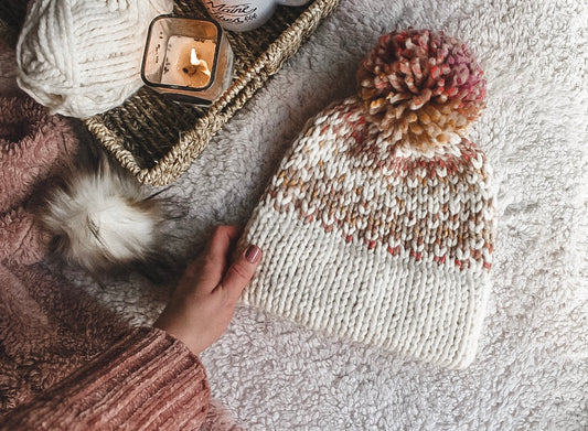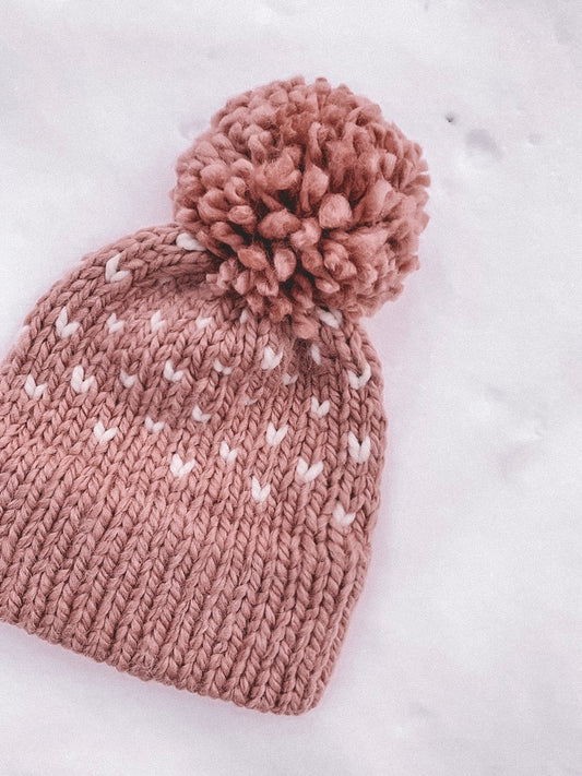 Double Brim Fair Isle Hearts Hat Knitting Pattern – Pom Pom Beanie PDF – Cozy Winter Knit Hat – Instant Digital Download