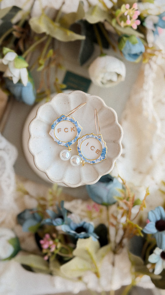 FCK ICE Chinoiserie Frame Pearl Earrings- Handmade Polymer Clay Statement Dangles