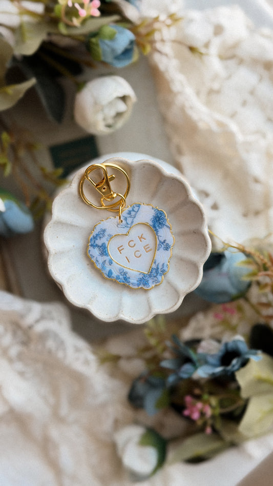 Chinoiserie FCK ICE Heart Keychain- Handmade Polymer Clay Bag Charm