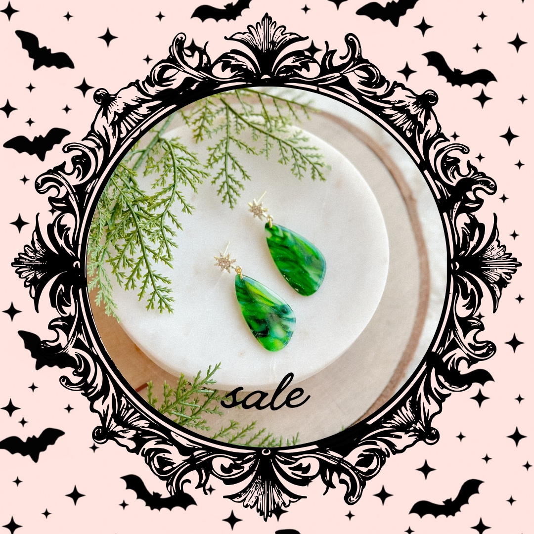 Beautiful earrings as always! I love the green stained color so much. It definitely gives off Elphaba vibes.