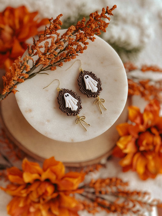 Vintage Ghostie Portrait Dangle Earrings – Haunted Portrait Polymer Clay Jewelry