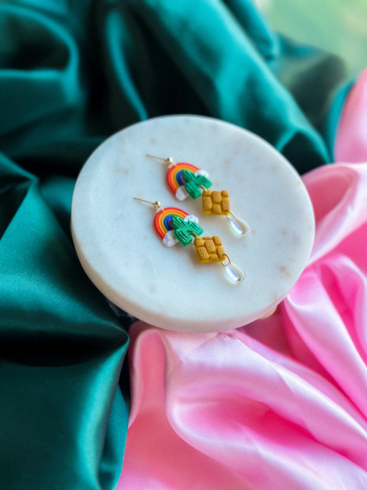 Yellow Brick Road Dangle Earrings – Wizard of Oz Inspired Polymer Clay Rainbow Drop Earrings