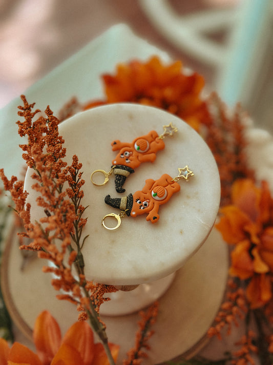 Pumpkin Carebear Drops – Halloween Polymer Clay Dangle Earrings