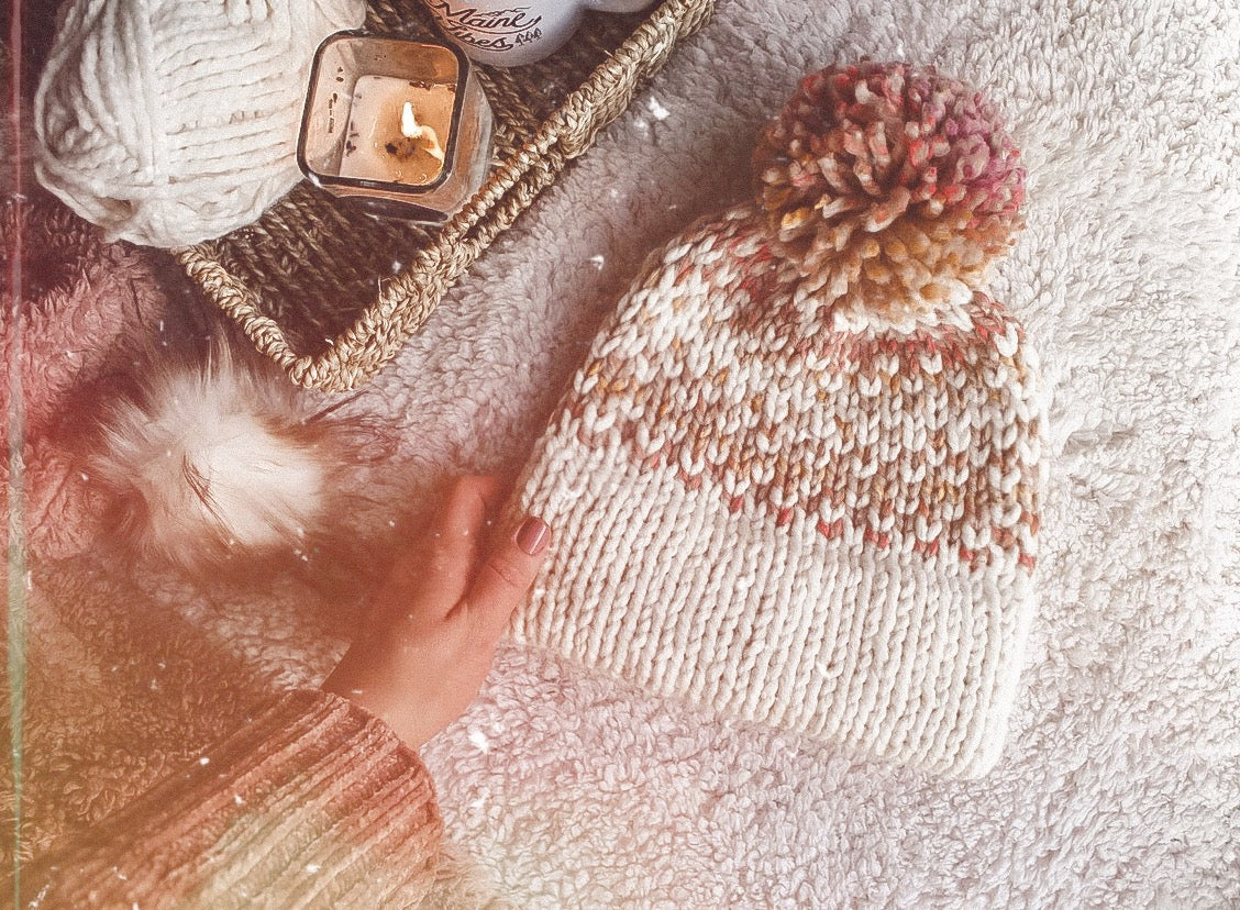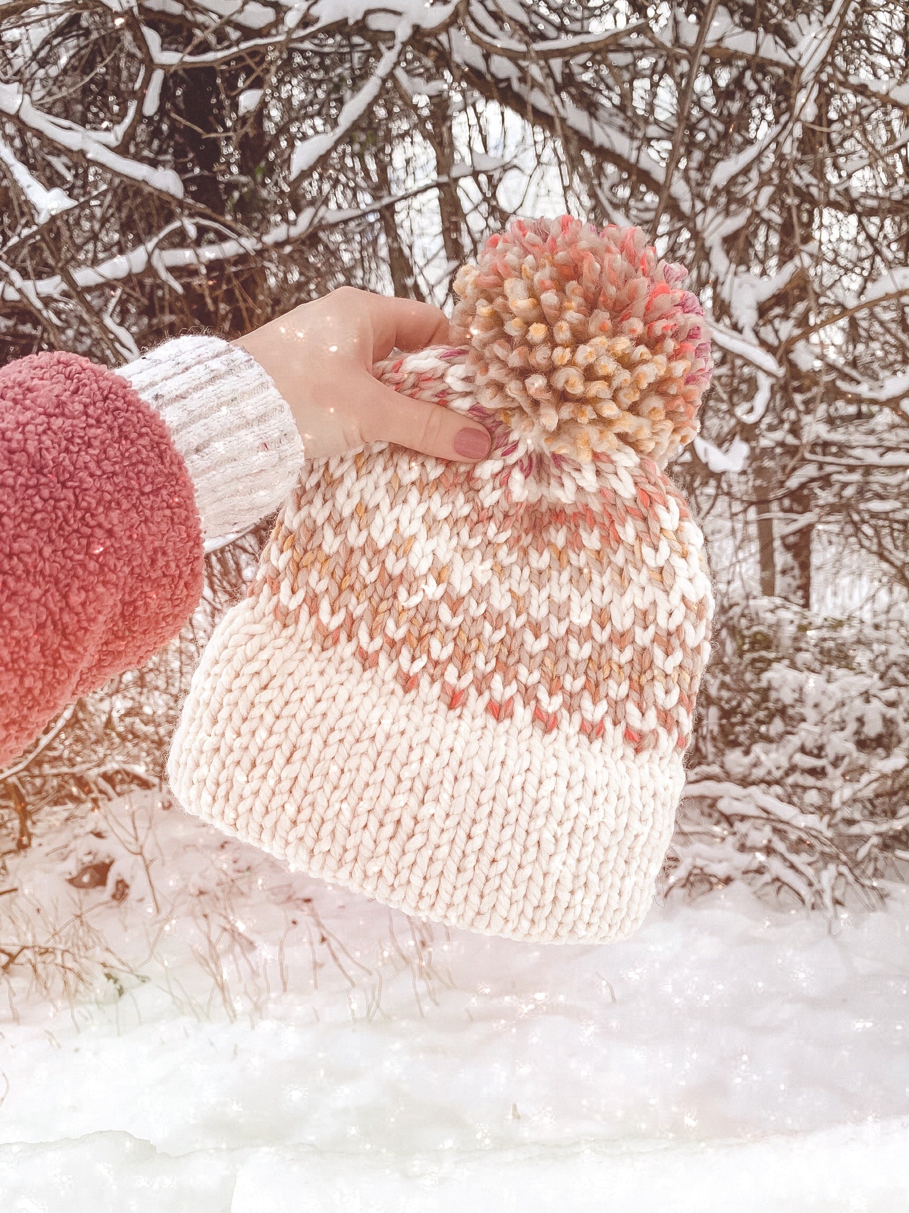 Adult Knitted Fair Isle Double Brim Beanie with Pom Pom // The Hallowell