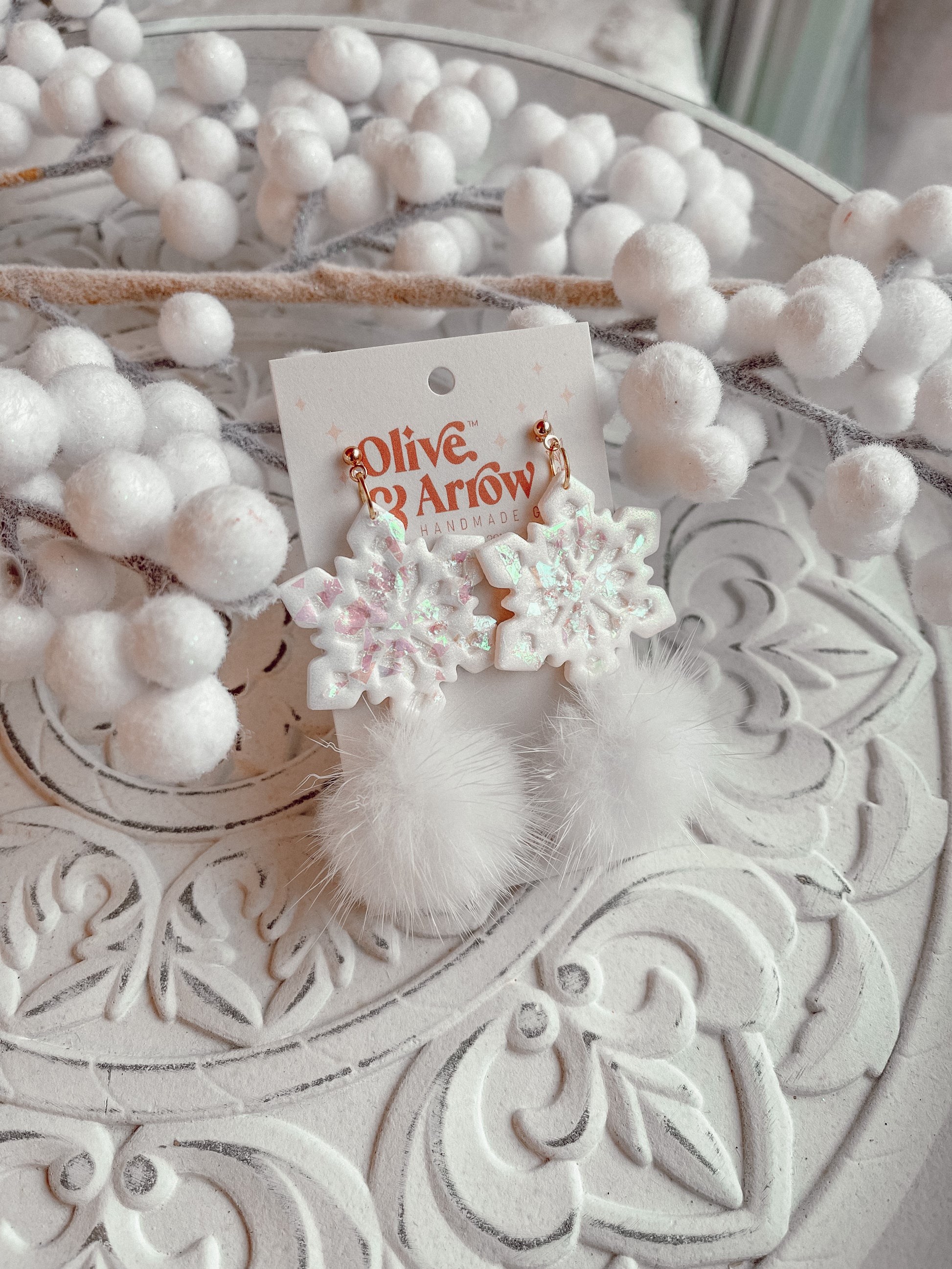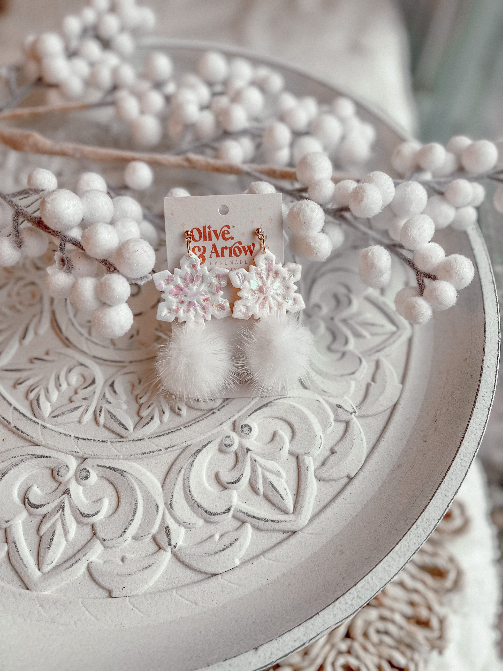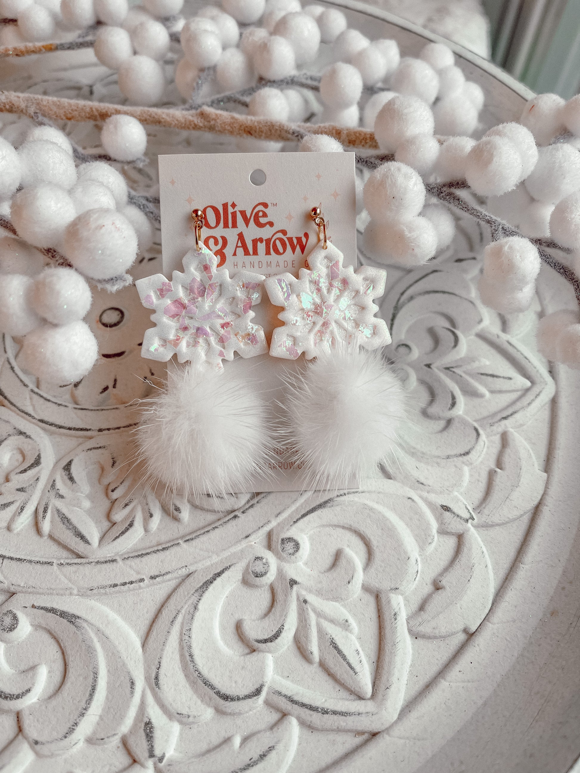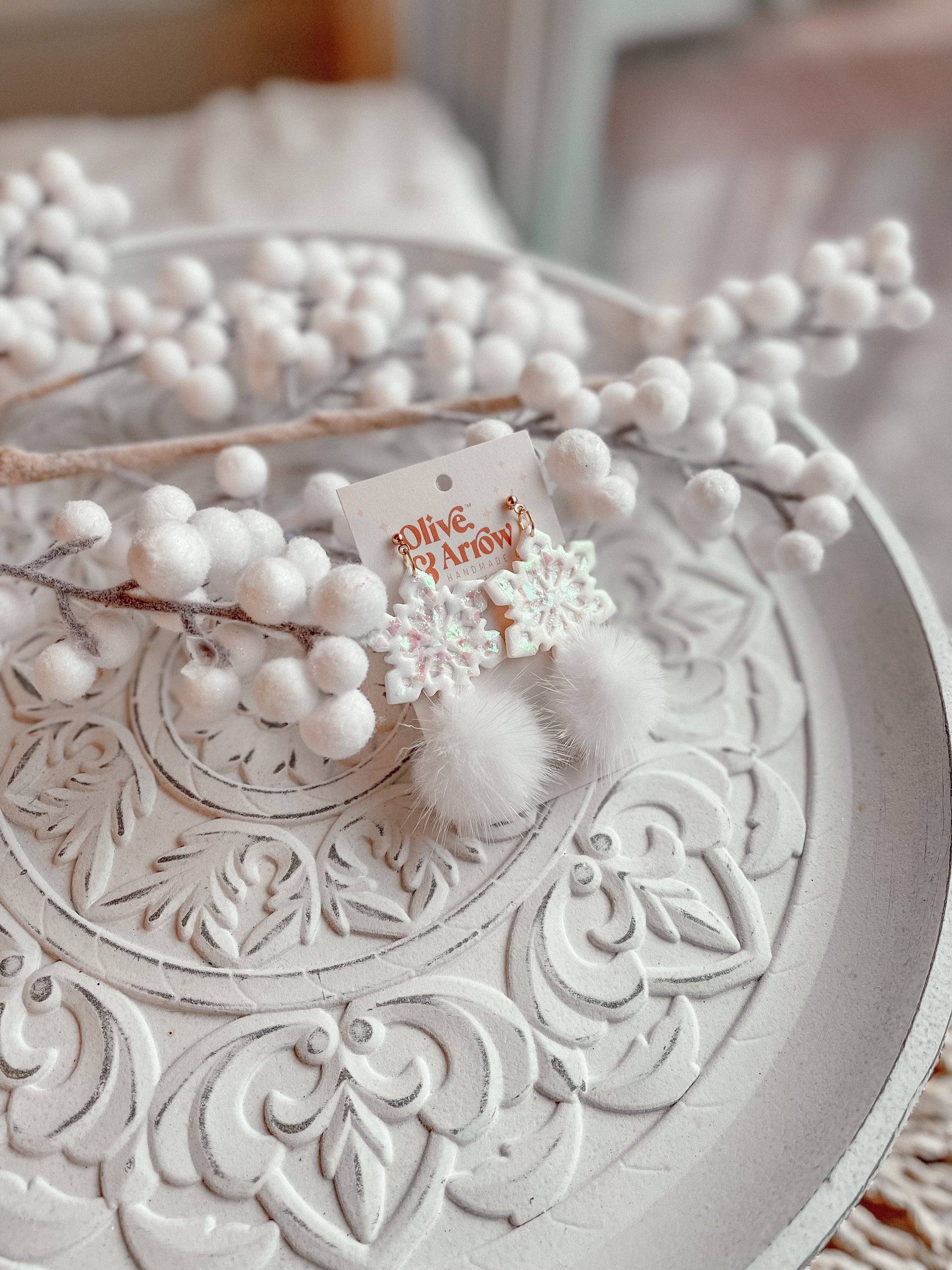 Holographic Snowflake Fur Pom Dangles // Holiday 22