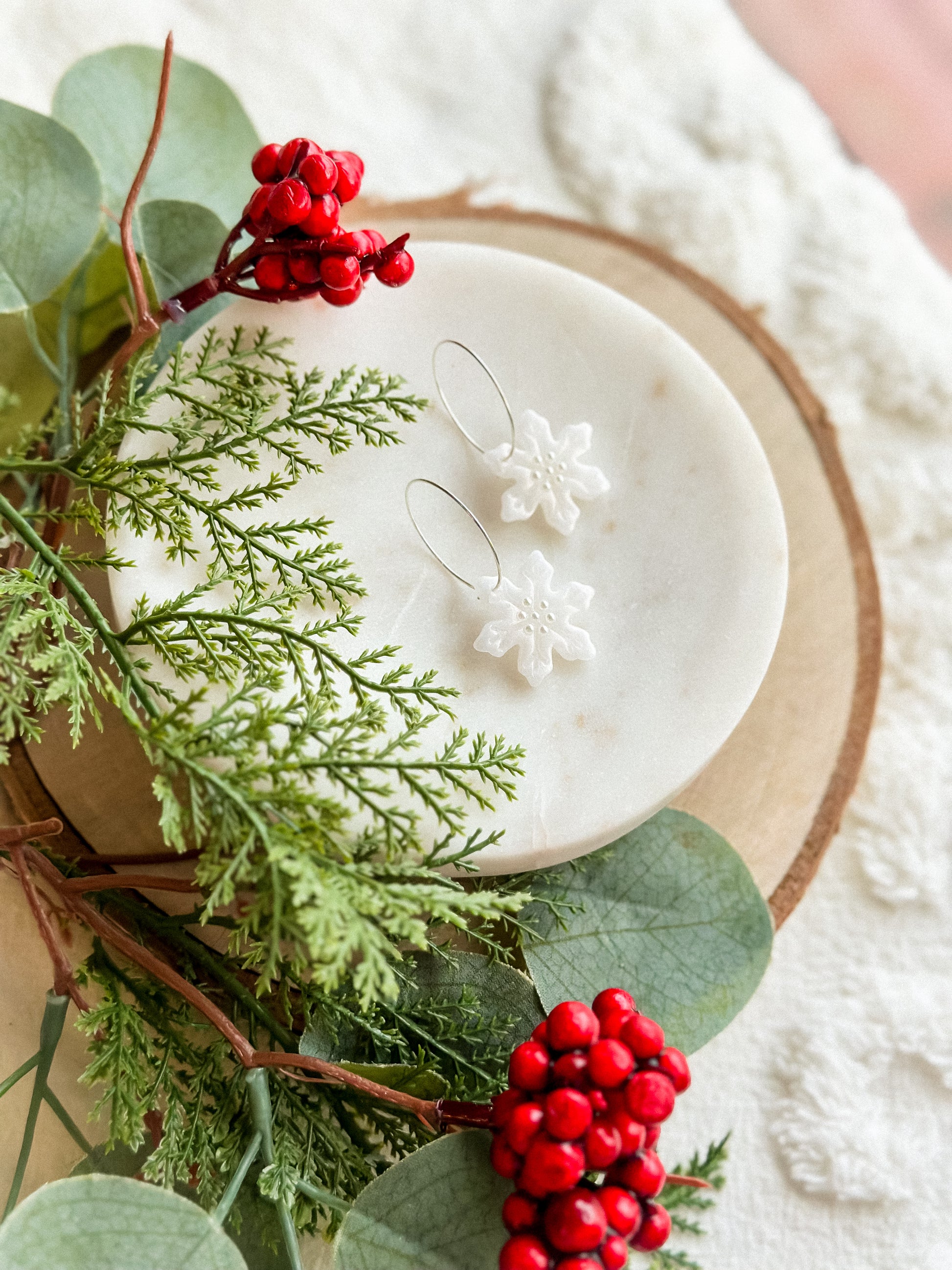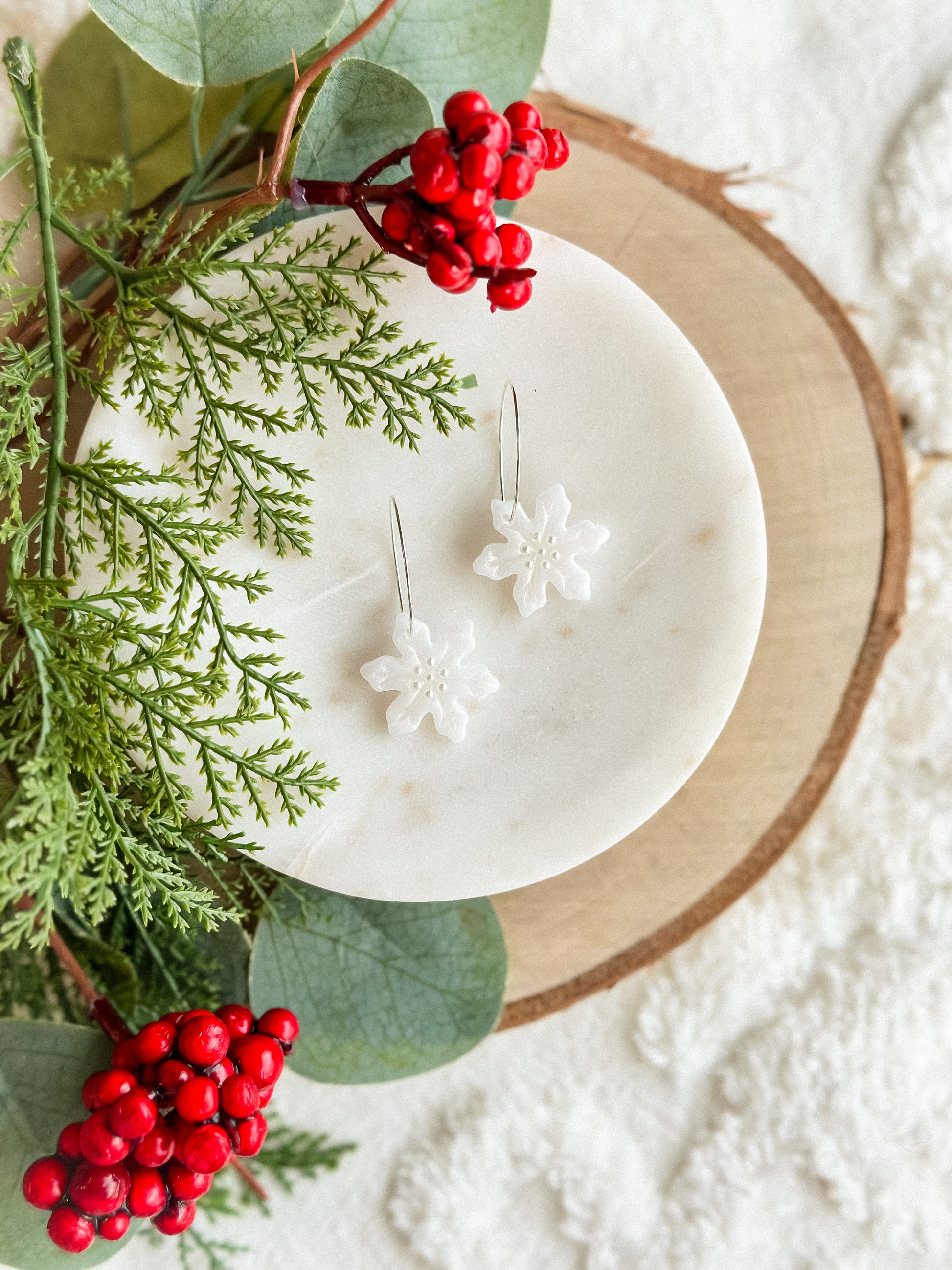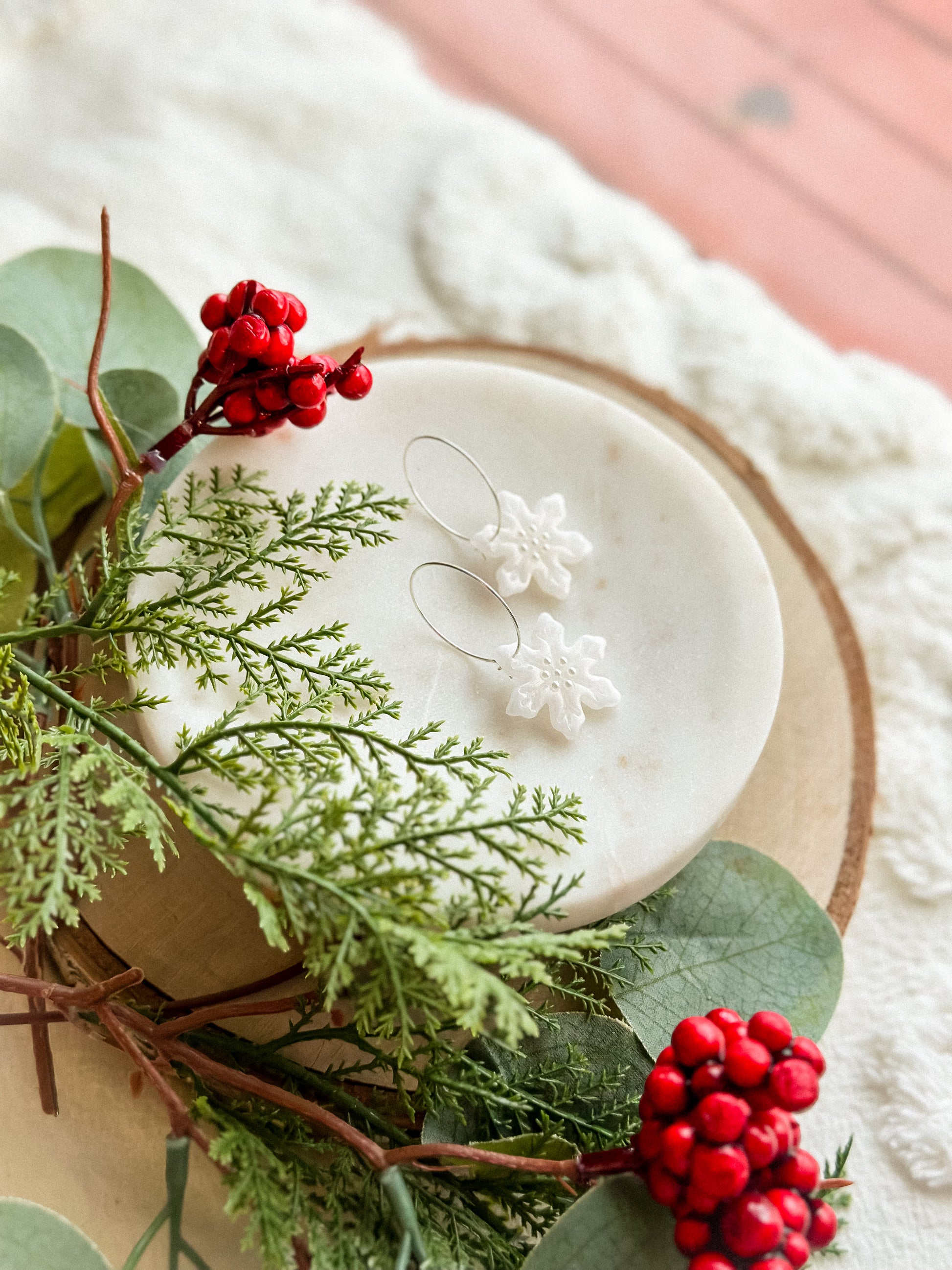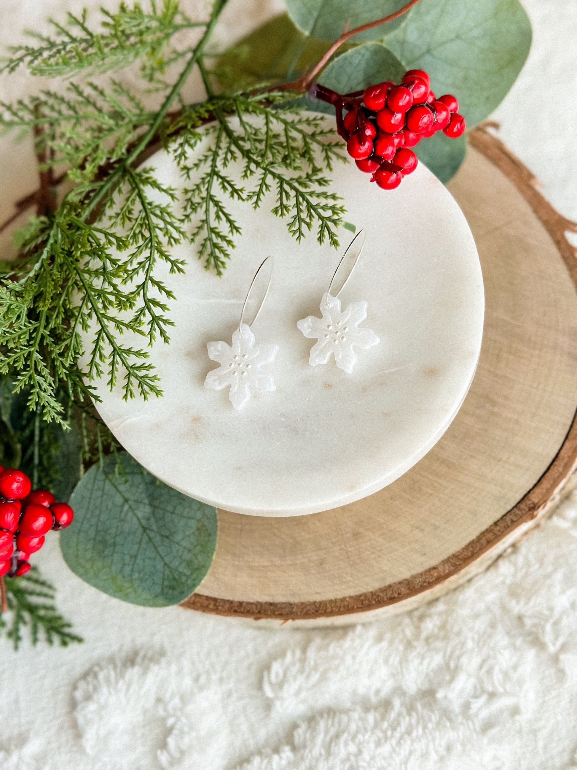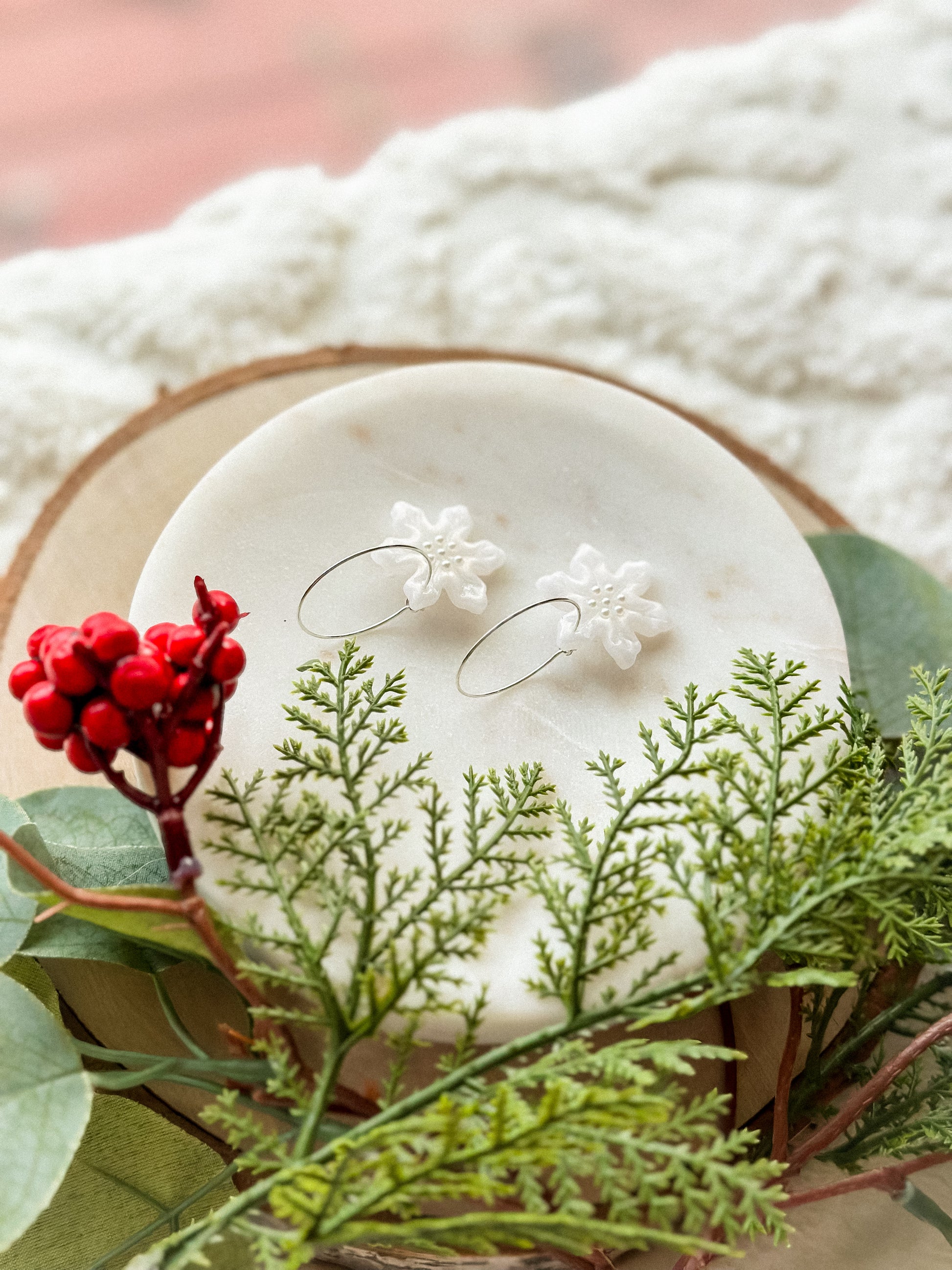 Ice Queen Shimmer Pearl Snowflake Silver Hoops