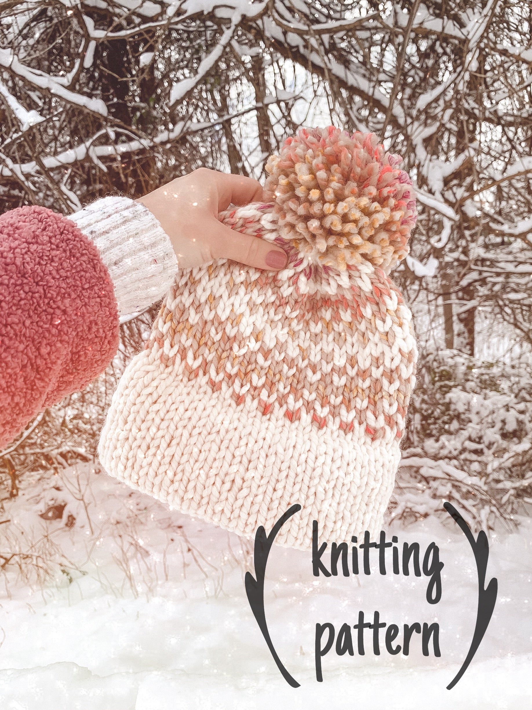 Easy Knitting Pattern Adult Hat Double Brim Beanie Fair Isle Knitting // The Hallowell
