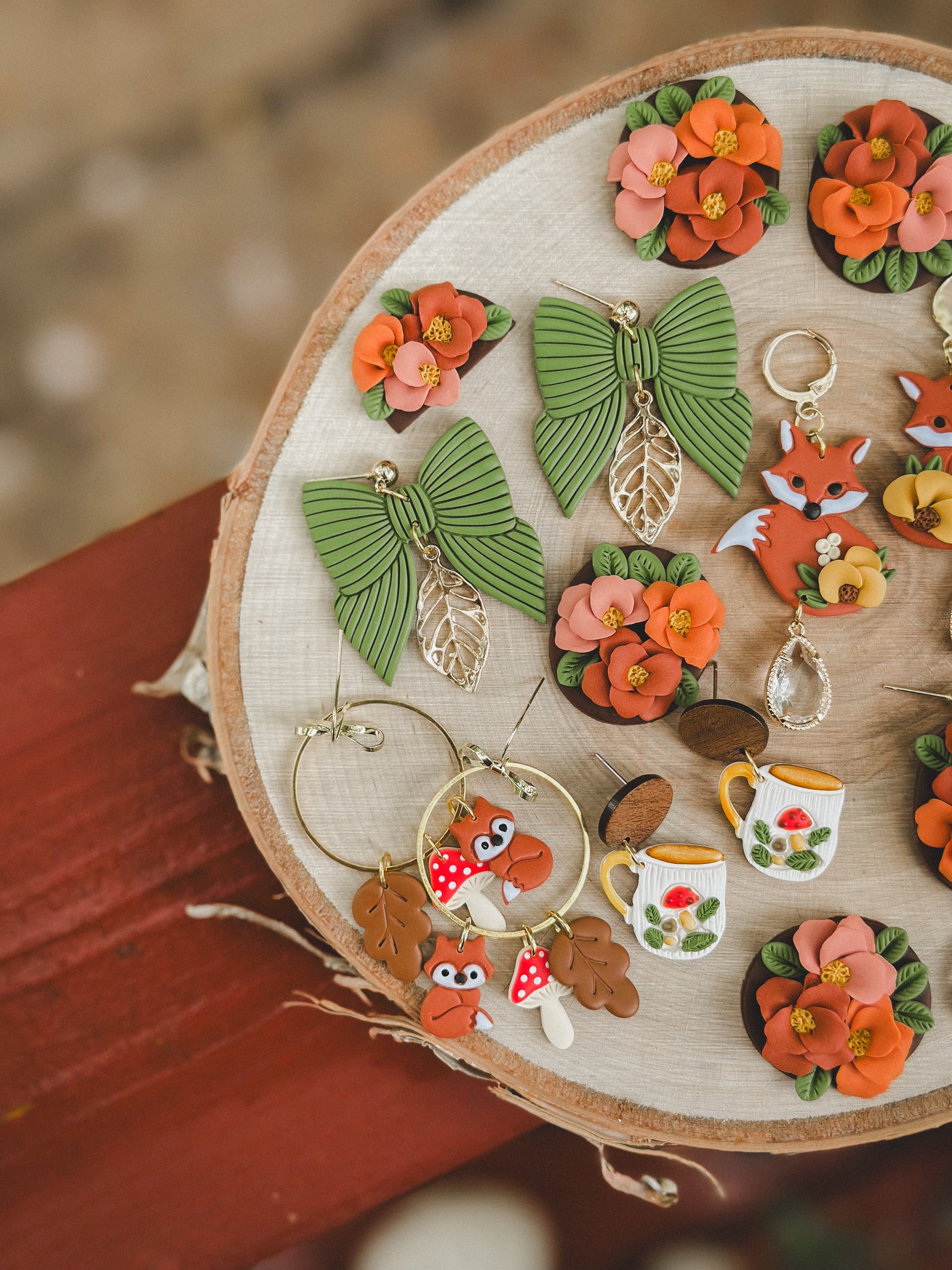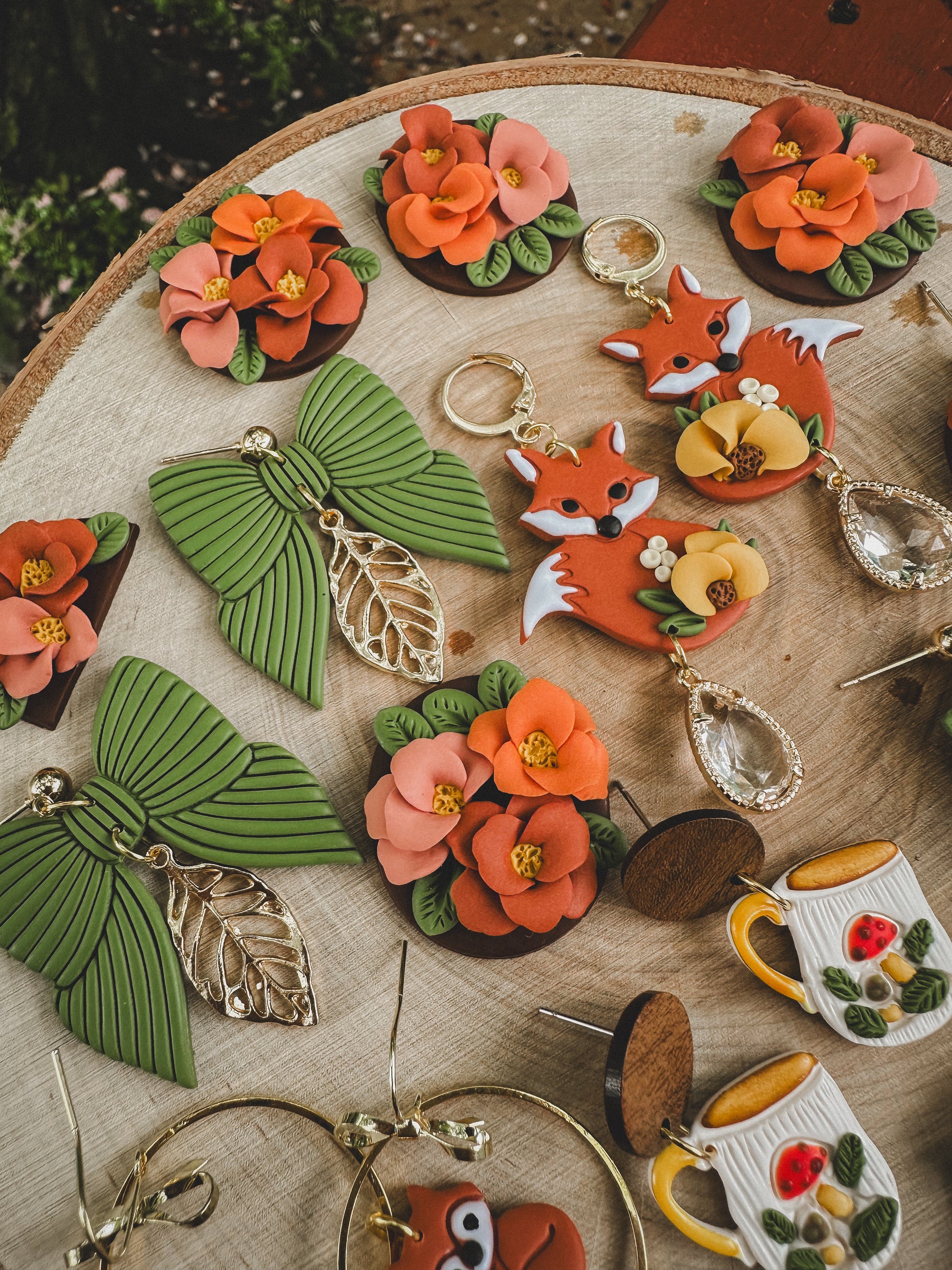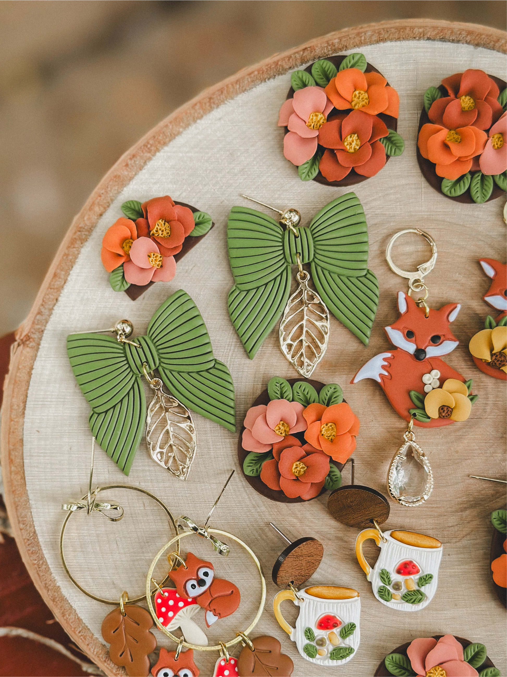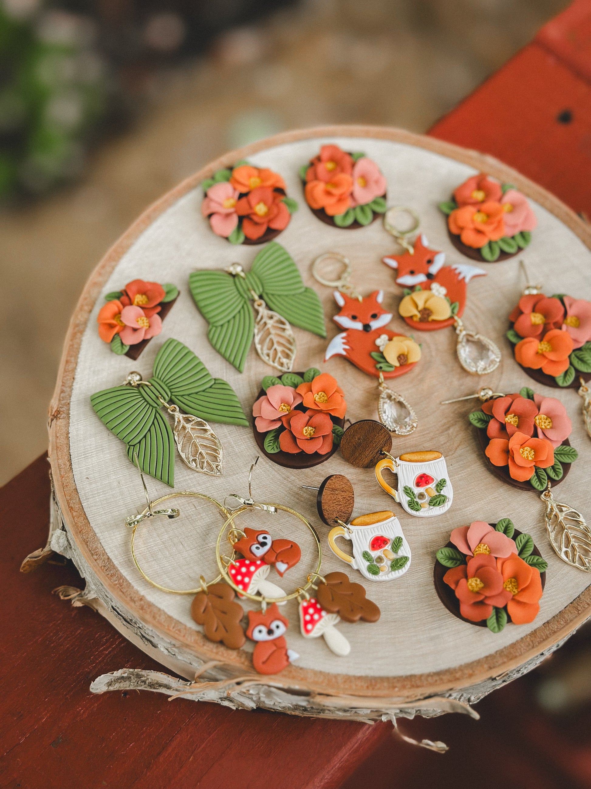 Handmade statement earrings crafted with lightweight polymer clay, each pair is unique and one of a kind!