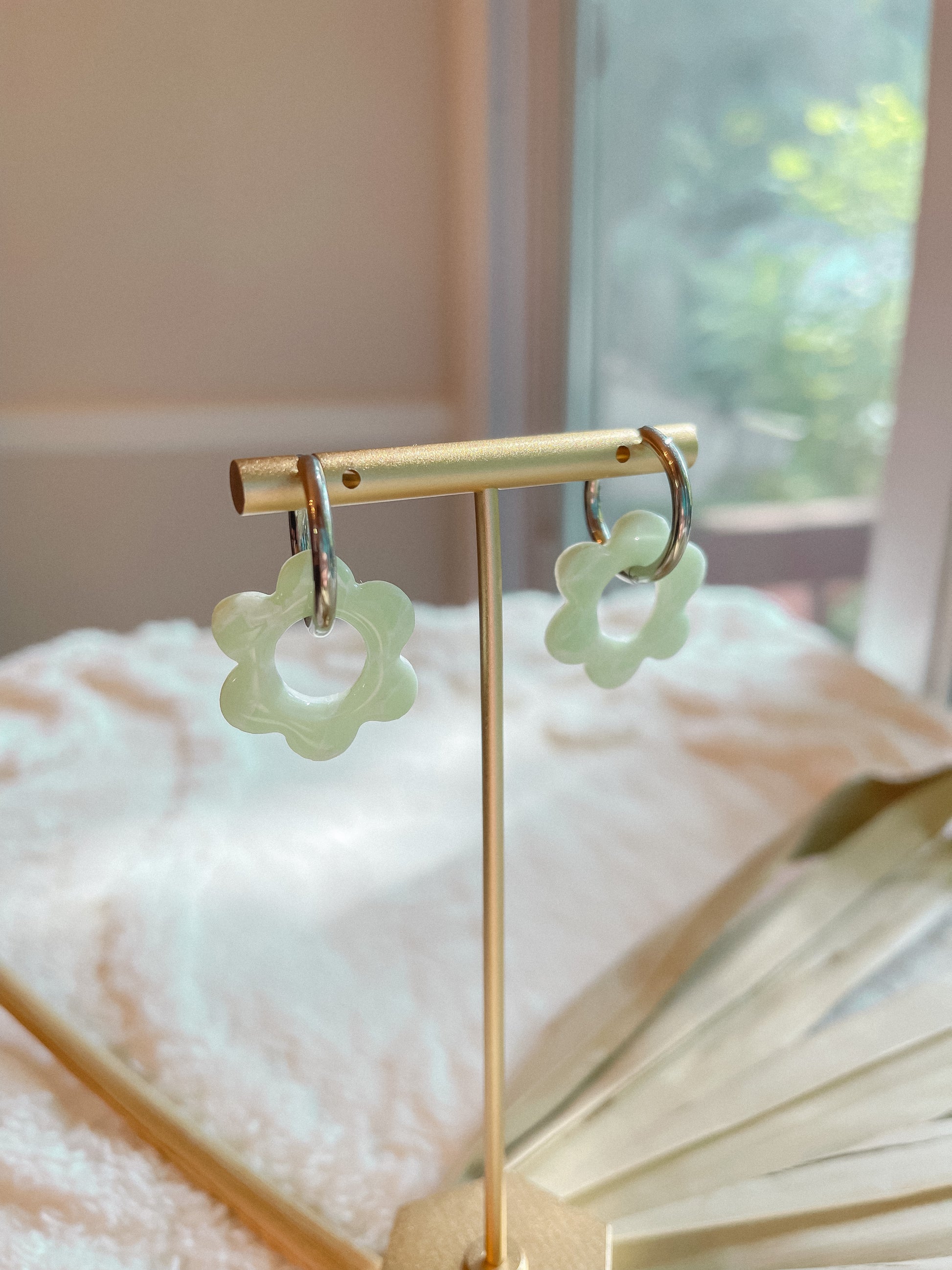 Seafoam Daisy Huggie Hoops- SILVER // Summer Collection 2022